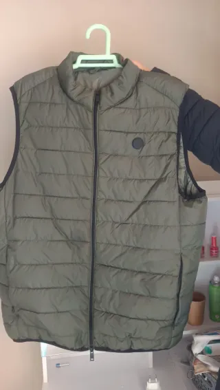 Chaleco de color verde oliva. Pone talla M pero es una S - Diseño acolchado. - Cierre de cremallera frontal.