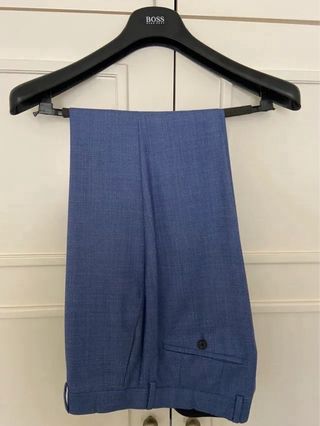 Pantalón de vestir de corte clásico slim en color azul marino oscuro, de marca Álvaro Moreno. Talla 36. No suele ser típico en tiendas (más online) debido a que no suele pedirse tanto como las típicas tallas. En muy buen estado. - Diseño liso. - Cierre de botón y cremallera. Ajuste cómodo. - Bolsillos laterales. - Dos bolsillos traseros.