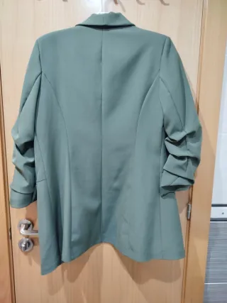 Bonita americana con unas suaves líneas. No se arruga, con bolsillo, entallada. Muy combinable. Talla 48 y de marca española.