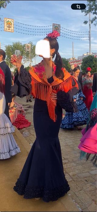 Traje de flamenca azul noche y negro
