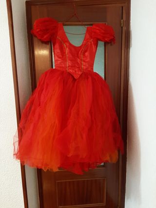 El vestido es un body. Tul y raso. Color rojo. Hecho a mano. Es único. Cuerpo forrado. Tiene un desperfecto en una manga que se puede reparar y a penas se nota. Está utilizado, pues se usó para bailar. Es ligero y cómodo. Ideal para fiesta, disfraz, Carnaval, hallowen, noche, Navidad, hada, bailarina, baile, boda, invitada... La talla sería una 36-38