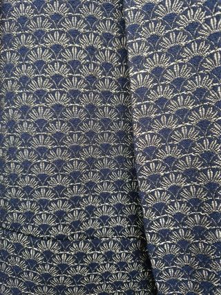 Traje pantalon y chaqueta, jaquard flor. Fondo azul noche y dorado. Sin estrenar