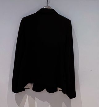 Elegante blazer negro de Zara, perfecto para cualquier ocasión. - Diseño de doble botonadura. - Cuello solapa clásico. - Bolsillos frontales. - Botones de raso negro - Comprada el año pasado de la colección de noche vieja - Preciosa Talla xl pero da poca talla , medidas en la foto - La modelo de Zara la llevaba de vestido - Gran calidad