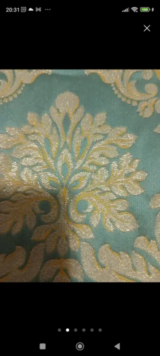 Vendo piezas de tela para confeccionar indumentaria fallera. Con tela para dos corpiños, uno en azul como el fondo de la tela y otro en amarillo como el dorado de la tela + las puntillas para las mangas y escote + forro en color beig. La tela amarilla tiene 1 metros por 2,80 de raso. La azul 1 por 1,50. Vestido 2,88 de largo por 7,08 de ancho. Forro 4,28 de largo por 1,44 de ancho Las puntillas están en dos trozos 2,10 para el cuello y 2m.para las mangas. ela con un diseño damasco en relieve, ideal para trajes regionales o decoración.
