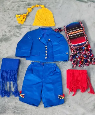 🔻Conjunto de traje fallero Torrenti Talla 0 más accesorios 💥 Seminuevo, poco uso. 🔸Chaqueta azul con botones dorados. 🔸Pantalón corto azul. 🔸Gorro tejido amarillo con borlas 🔸Manta de Saragûell con borlas 🔸2 Fajines Diferentes Colores