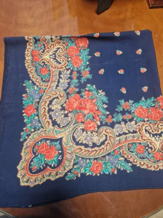 Pañuelo con un diseño floral vibrante, ideal para complementar tu atuendo fallero. - Estampado detallado con motivos florales. - Tonos azules y rojos predominantes. - Medida 41x41 cuadrado.
