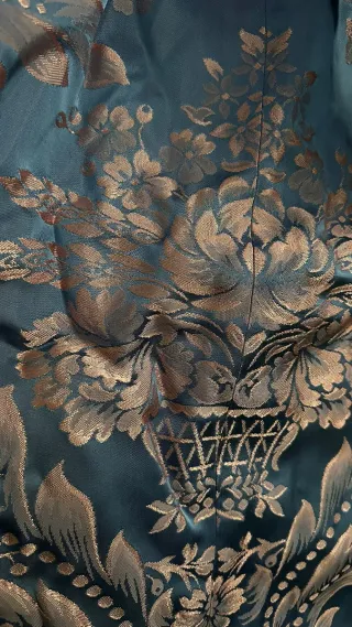 ✨ Tela para vestido de fallera – Jacquard brocado tradicional ✨ ideal para confeccionar un traje de fallera El tejido tiene un diseño clásico valenciano, con motivos florales en tonos suaves (azules, verdes y dorados) enmarcados por elegantes cenefas ornamentales. La base es en color marfil, lo que le da un toque muy fino y luminoso. Es una tela con cuerpo, resistente y de gran calidad, perfecta para indumentaria tradicional. El dibujo está muy bien definido y distribuye los motivos de forma equilibrada, aportando un acabado elegante y auténtico. Ideal para: 👗 Vestido de fallera 🪡 Complementos de indumentaria 🎭 Trajes tradicion