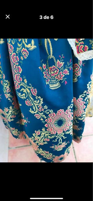 Se alquila traje de fallera talla 34/36 con zapatos a juego de la talla 36,manteletas y cancan en buen estado solo presentaciónes se pedirá fianza,posibilidad de elegir falda azul eléctrico o amarillo. Se dejará una señal para la reserva y se pedirá una fianza de 200€ y un DNI a la recogida del traje,que se devolverán inmediatamente a su vuelta. La falda da para una estatua de 1,63 aprox.