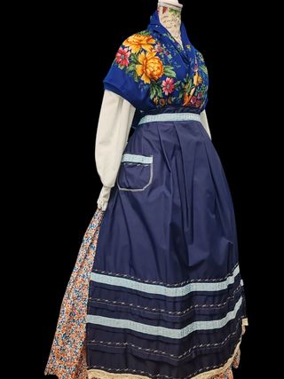 Conjunto 3 piezas falda manton y delantal ideal 38 /40 incluso 36, mucho vuelo haldar fruncida de pañal, manton de 110 cms fondo azul marino Baturra regional indumentaria maña jotera fallera valenciana huertana Lotes y envío económico y Wallapop envíos también consulta sin compromiso también probar posibilidad de probar o envío económico y esenciaregional.com con envios gratuitos