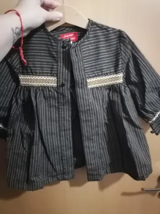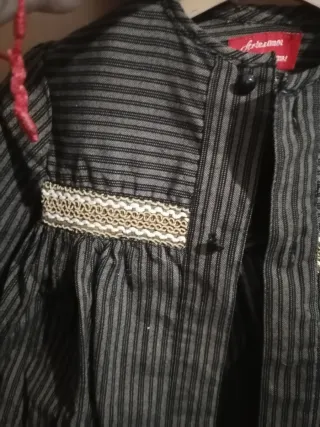 Conjunto completo para bebé, ideal para fiestas falleras. - Diseño tradicional con detalles bordados. - Incluye varias piezas para un atuendo completo. - Tejido de alta calidad y cómodo. Espardenyas sin estrenar