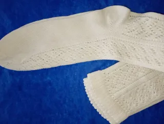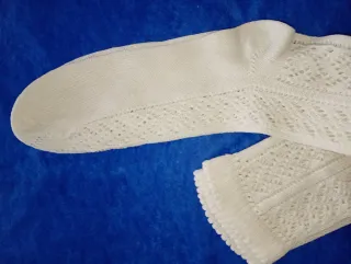 Calcetines blancos con diseño de encaje, ideales para trajes regionales y fallera y vestir - Tejido de punto algodón con detalles calados. - Acabado festoneado en el borde superior. Medidas Pie 21 cms de talón a punta Largo de arriba al talón 42 cms