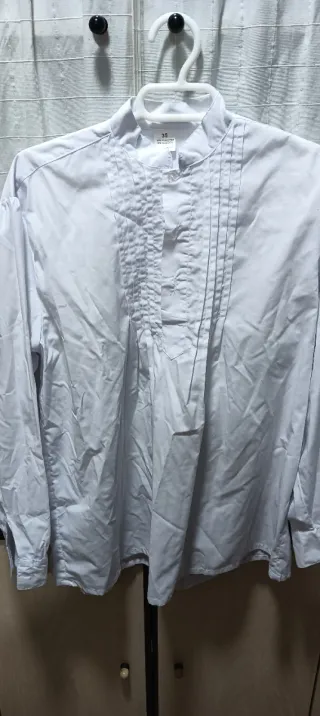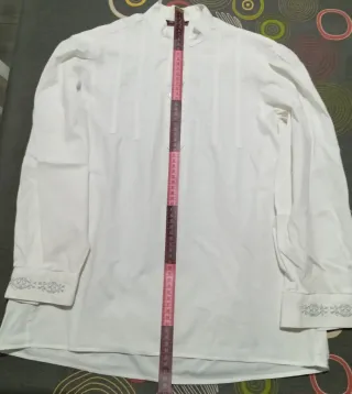 Camisa blanca de fallero, ideal para fiestas y eventos. - Talla 10 - Diseño clásico con detalles plisados en el pecho. Medidas en fotos