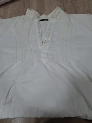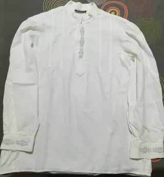 Camisa de fallero con detalles bordados en plata. Para niño de 10 a 12 años, medidas en las fotos - Cuello mao. - Bordados plateados en cuello y puños. - Abertura frontal con botones.