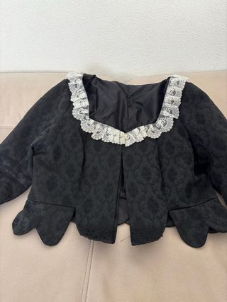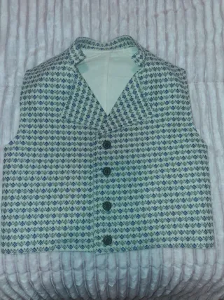 Bonito chaleco para niño con un diseño tradicional fallero. Es talla 2/3 aproximadamente, dependiendo del niño, medidas en la imagen. Está completamente nuevo - Tejido con motivos florales bordados. - Cuello alto con detalles. - Cierre con botones decorativos.