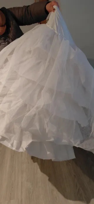Cancán de fallera de la marca Mavimar. Ideal para lucir con tu traje de fallera o regional. Talla 70, con 3 aros y 2 tules. Lleva cuerpo para mayor comodidad, para niña de mas o menos 6-10 años ( depende de la niña ) utilizado en 2 ofrendas de Valencia. Con su bolsa original - Diseño voluminoso. - Tejido ligero y vaporoso. - Acabado con puntilla.