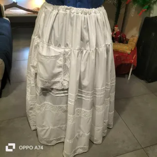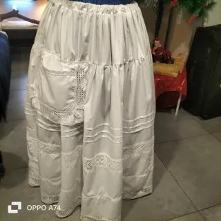 Enagua tradicional para indumentaria fallera, con detalles de encaje. - Tejido blanco de popelín - Adornos de puntilla Sin estrenar Ancho desde 70 hasta 110 de cintura Largo 100 Ancho del bajo 4,50 MTS. Soy de Alicante y hago envíos