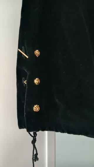 Pantalón largo de terciopelo negro, ideal para fallas. Cintura.78 cm. Largo 57 cm. - Tejido de terciopelo. - Detalle de botones dorados. - Cordón para ajuste en la cintura.