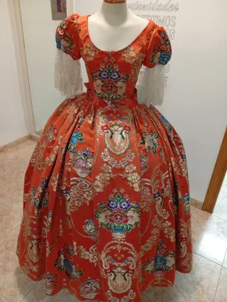 Traje de fallera completo, una pieza tradicional y elegante. - Diseño con detalles en dorado y rojo. - Tejido de alta calidad -incluye manteletas y zapatos talla 38