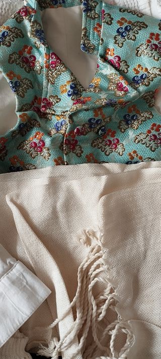 Corpiño para traje alicantina o fallera para niña de 3/4 años. Esta en prefecto estado porque se lo ha puesto en 3 desfiles. Es de color verde,muy bonito. Confeccionado en tienda de indumentaria regional