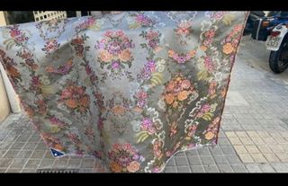 Tela para traje regional de fallera o para un vestido. Tipo damasco. La tela mide 1,28 metros por 2,80 metros. Se puede ver sin compromiso.