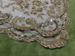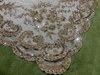 Precioso pico de fallera antiguo, una pieza de artesanía con detalles dorados y blancos. Medidas en las fotos. - Diseño intrincado con bordados. - Adornado con lentejuelas y pedrería. - Borde festoneado.