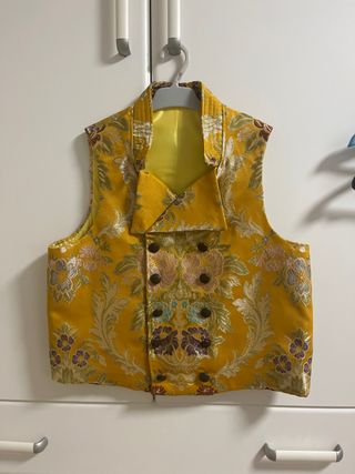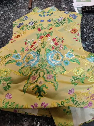 Chaleco tradicional para niño, ideal para fiestas falleras. Presenta un diseño floral muy elaborado. Fallero. En las fotos estan las medidas - Bordado detallado con motivos florales. - Tejido con hilos dorados y multicolores.
