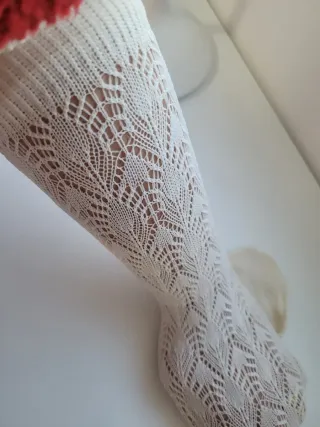 Calcetines de encaje beige ideales para trajes regionales. - Diseño delicado. - Tejido transpirable. Talla unica color beige.sin uso nuevos
