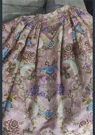 Tela con un bonito estampado floral en tono grise/ verdoso. Con flores en tonos rosados y marrones. Con un dibujo precioso Ideal para reproducciones de trajes de valenciana a l'antiga. Con posibilidad de varias combinaciones con traje entero, corpinyo liso y falda estampada, corpiño estampado y falda lisa, etc... - Diseño floral detallado. - Textura rica y elaborada.