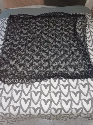 Mantilla de encaje chantilly, ideal para trajes de fallera - Diseño floral intrincado.