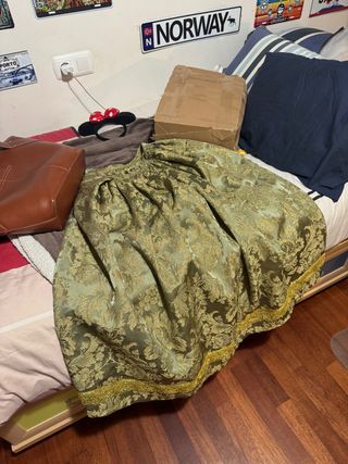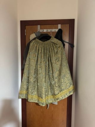 Traje de fallera completo con manteletas. Medidas en las fotos. - Diseño intrincado en tonos verdes y dorados. - Manteletas delicadas con bordados. - Tejido de alta calidad con detalles ornamentales.