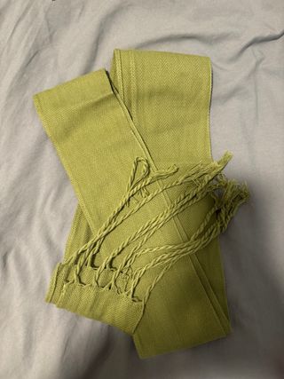 Faja para bebé con diseño tradicional. - Tejido con patrón de espiga. - Adornada con flecos. - Color verde vibrante.