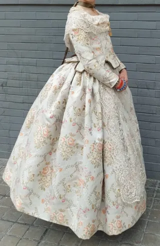 Auténtico traje de fallera de época, inspirado en el siglo XVIII. Una pieza única con detalles exquisitos. - Diseño tradicional. - Tejido de alta calidad. - Tengo el mantón para el frío -Puesto solo una vez -zapatos talla 37 -Completo. incluye mantilla y aderezos. todo completo. negociable