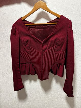 Corpiño de manga larga T42-44. - Escote en pico. - Peplum en la parte inferior. - Cierre central. - Mangas largas con detalle en puño.