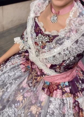 Traje de Fallera morado y rosa