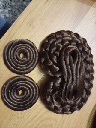 Conjunto de dos moños para fallera, ideales para niñas. Presentan un diseño en espiral. Mediano color 6 Sin estrenar.Impecable - Dos unidades incluidas. - Color marrón oscuro.