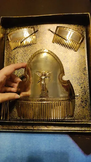 Peinetas cinceladas a mano por Roda, diseño clásico de angelote. En perfecto estado. Fallera valenciana huertana alicantina castellonera peinetas aderezo mantilla manteletas casulla espolín roda orfebre orfebrería sxviii sxix