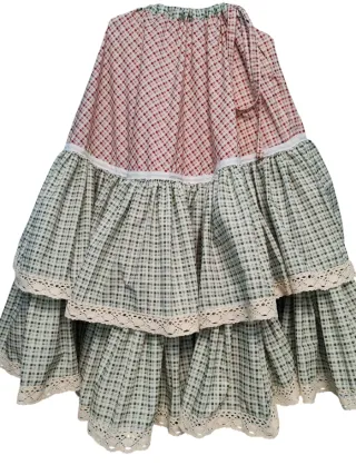 Preciosa enagua de regional con un diseño de cuadros y dos volantes con mucho vuelo El de abajo mas de 8 metros, el superior 5 metros, realizada en algodon, largo 91 cms, adapta a todas las tallas por su veta en la cintura Baturra regional indumentaria maña jotera fallera valenciana huertana Lotes y envío económico y Wallapop envíos también consulta sin compromiso también probar posibilidad de compra en esenciaregional.com con envio gratuito