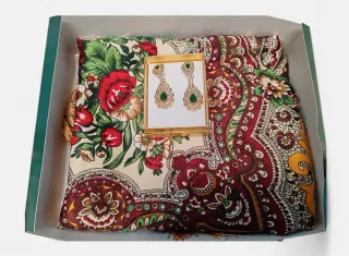 Caja decorada con motivos navideños, ideal para regalar navidad. Contiene un manton grande de 160 de lado mas pendientes cierre omega en caja de regalo Baturra regional indumentaria maña jotera fallera valenciana huertana Lotes y envío económico y Wallapop envíos también consulta sin compromiso también probar posibilidad de compra en esenciaregional.com