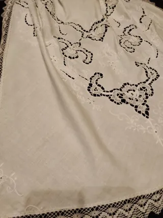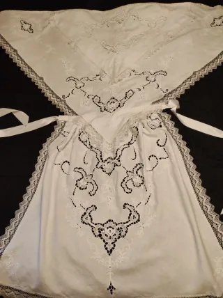 Mantón y delantal blancos bordados con puntilla