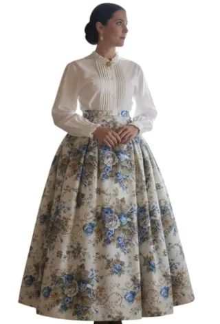 Falda de estilo regional con un bonito estampado floral. Ideal 38/40 vuelo 5, 60 metros, haldar fruncida de pañal Baturra regional indumentaria maña jotera fallera valenciana huertana Lotes y envío económico y Wallapop envíos también consulta sin compromiso también probar posibilidad de compra en esenciaregional.com