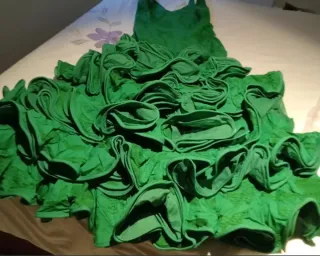 Traje de flamenca verde con lunares negros 💚 Precioso traje de flamenca en color verde intenso con lunares negros, súper favorecedor y elegante. Tiene un corte entallado que estiliza muchísimo la figura y varios volantes con ribete negro que le dan un movimiento espectacular. Usado en la feria de 2025. La tela es algodón y NO se arruga. Lava y estrena. NO LICRA. Yo mido 165 cm y uso talla S o M. Me lo compre una talla mas pero se puede entallar o echar porque tiene bastante. ✨ Mangas largas con volantes amplios muy llamativos ✨ Falda con varios volantes de gran vuelo ✨ Tejido cómodo y con caída preciosa.