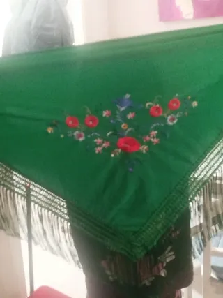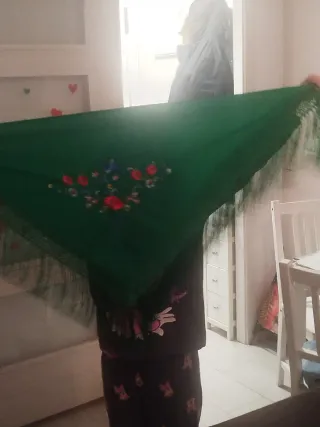 Manton Flamenca Iberbisu Verde Flores Flecos