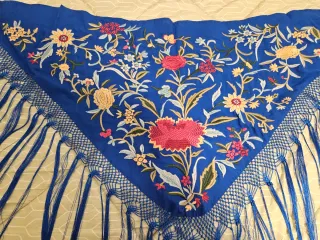Manton Flamenco Azul Bordado
