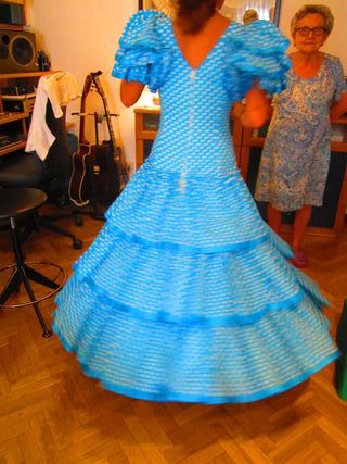 Traje de flamenca azul y blanco talla 12