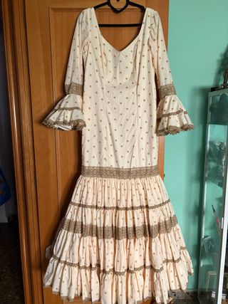 Traje de flamenca beige y verde