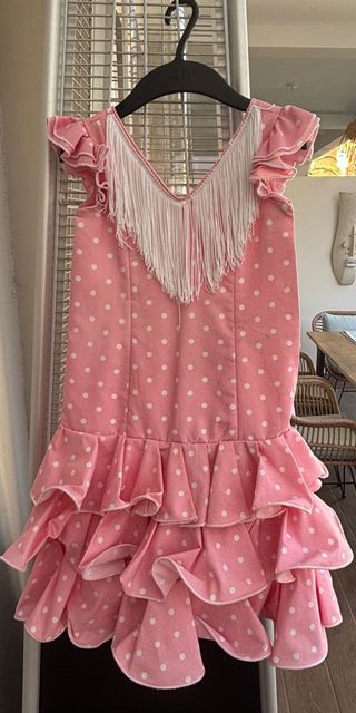 Traje de flamenca rosa con lunares talla 7-10 años