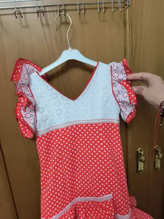 Precioso traje de flamenca para niña, talla 9 años, cuerpo perforado y falda popelín, hecho a medida por modista.
