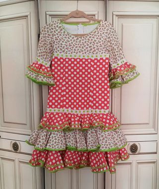 Vestido de flamenca de mujer corto talla M , echo por costurera, tiene un bolsillo dentro y costuras para sacar.