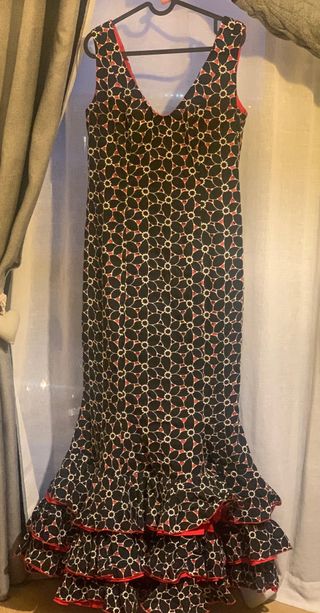 💃🏽 Traje de flamenca muy poco uso, buen estado. 💃🏽 Enaguas y bolsillo con cremallera. 💃🏽 Tejido fresco y cómodo. 💃🏽La talla es aproximada, ya que dependerá de la morfología de cada persona. 🚨 Comprueba tus medidas con las de la descripción del artículo 🚨 📐MEDIDAS: Pecho: 98 cm Cintura: 86 cm Cadera: 108 cm Brazo: 48 cm Largo: 150 cm 🪡 Tiene para sacarle 6 cm de largo y 30 cm de ancho. feria, teatro, disfraz, Rocío, caseta, vacaciones, venta, compra, mujer, hombre, niño, niña, tacones, fiesta, celebración, coche, casa, piso, mudanza, falda, Zara, Mango, sevillanas, sevillana, rumba, hogar.