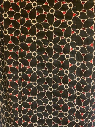 Traje de flamenca con un bonito estampado inspirado en el Mantón de Manila. Es una talla Grande, pero ANTES DE COMPRAR COMPROBAR MEDIDAS: sisa 52,5 cm, cintura 48 cm, caderas 50 cm y largo 134 cm. Además en las costuras tiene bastante para ampliar de ancho y de largo, como ves en las fotos. En la parte de delante tiene cinco hilos corridos como ves en la última foto, es apenas imperceptible, apenas se nota en el conjunto del estampado pero prefiero que lo sepáis. En las dos últimas fotos he puesto el cuerpo para que veais que no se nota y de cerca si te fijas se ven los cinco hilitos. Por lo demás el traje es muy original ,precioso